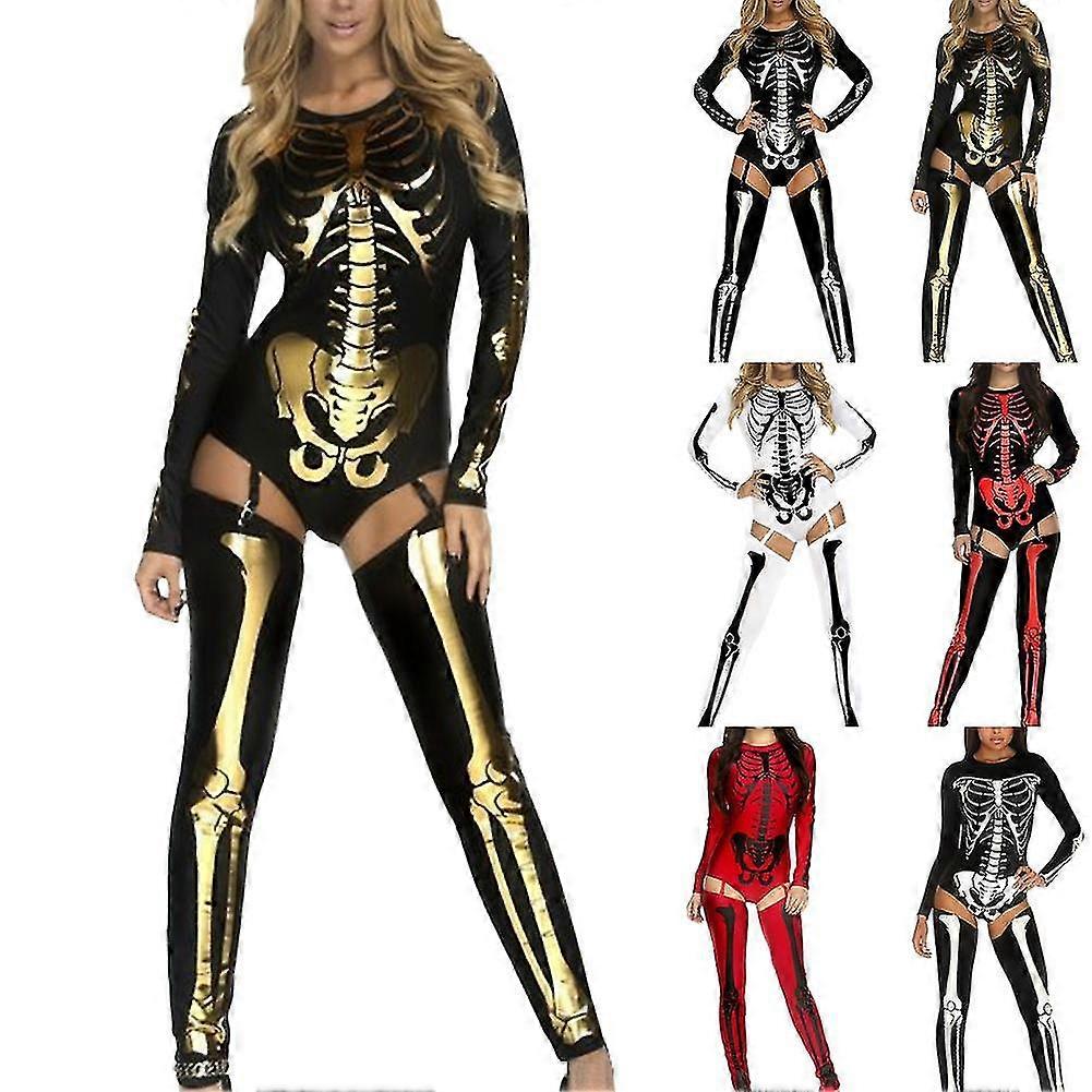 Purim Carnival Cosplay Costumes Fashion Bodysuit Skull Skeleton Print Jumpsuit Funny Women Suit Sexy Catsuit Female 5 Colors
