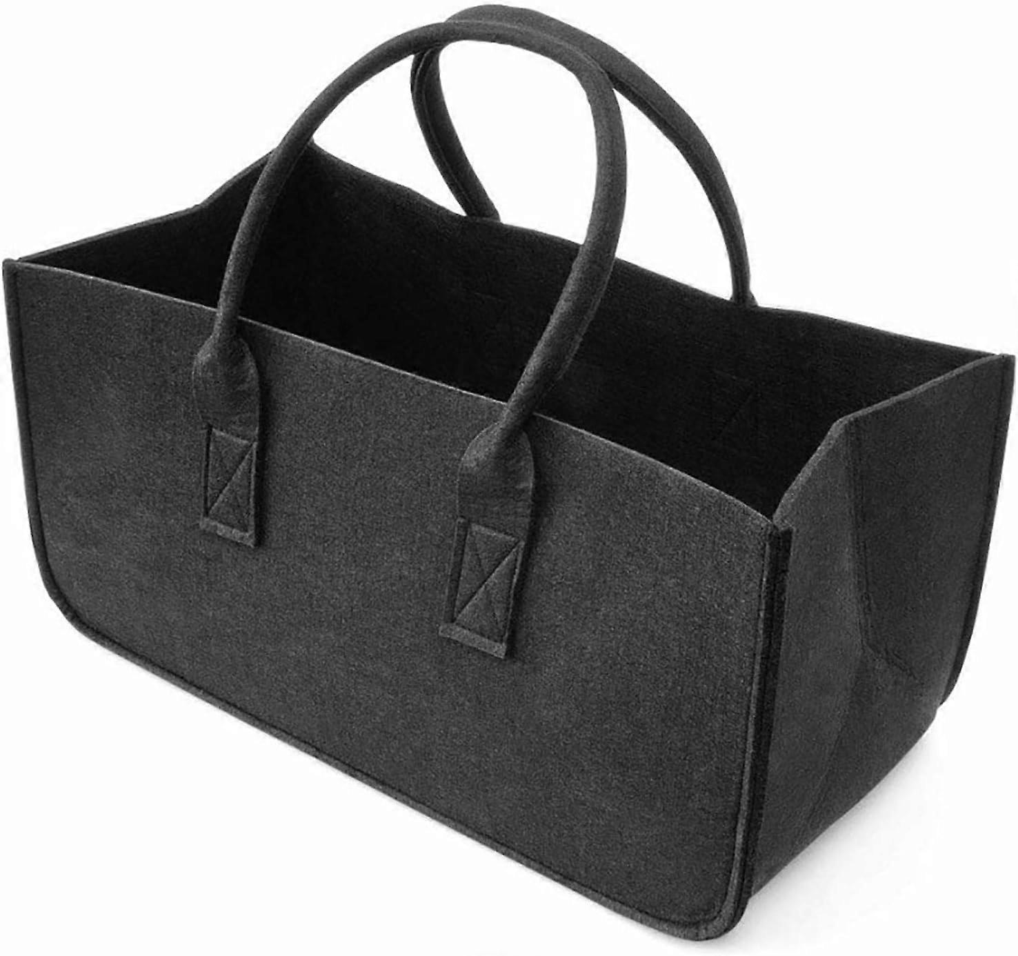 Felt Firewood Log Storage Basket, Firewood Carrier Bag, Felt Basket, Fireplace Wood Bag, Log Holder with Carry Handles for Outdoor Camping, Black