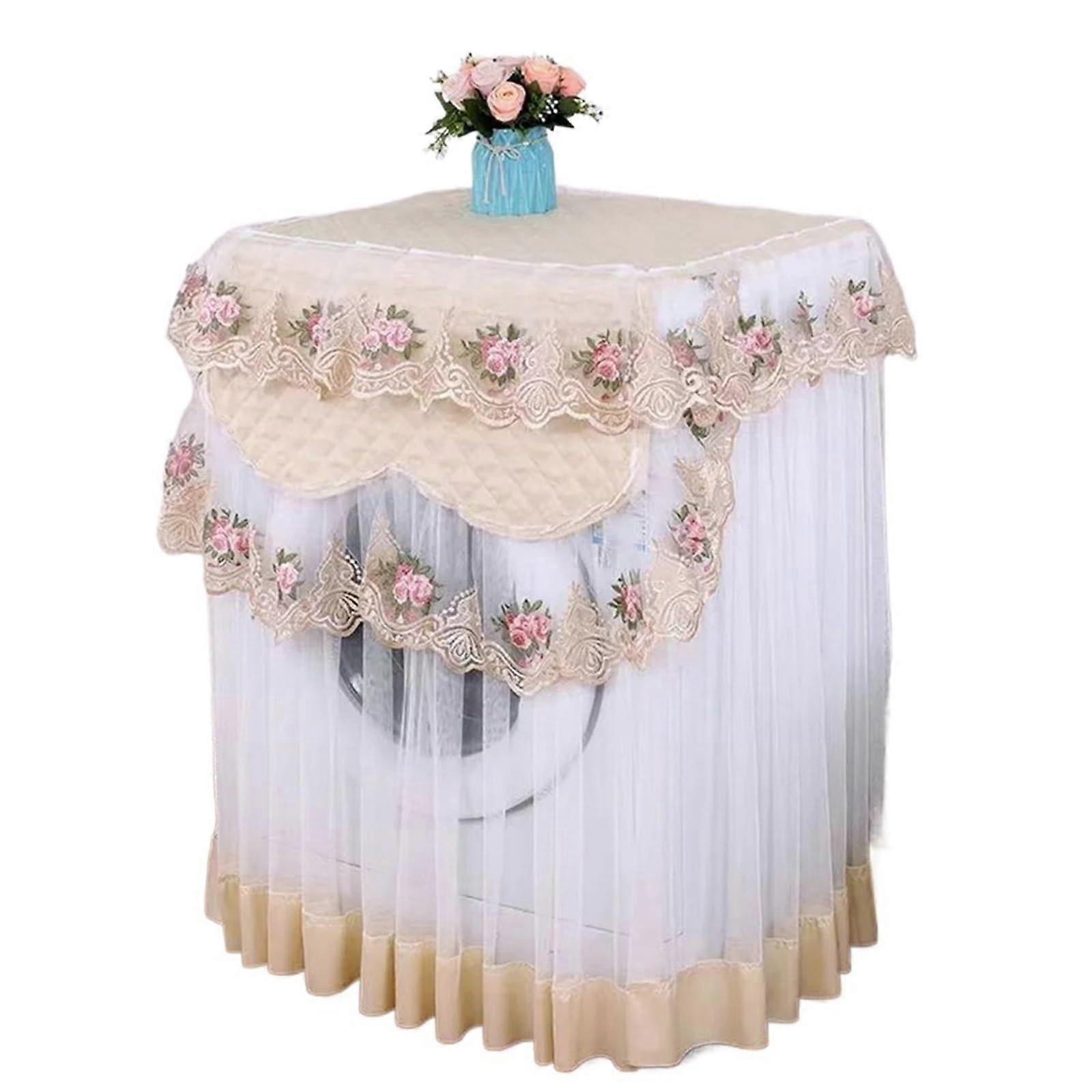 Washing Machine Cover, Dustproof, Floral Pattern, Home Decoration, Beige
