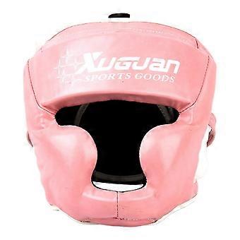 Adjustable Boxing Headgear MMA Head Guard with Face and Ear Protection PU Leather Pink M