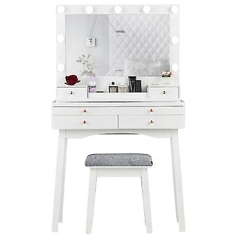 For Led Lighted Vanity Desk With Stool 3drawer Makeup Table Modern Dressing Table With Mirror Cushio