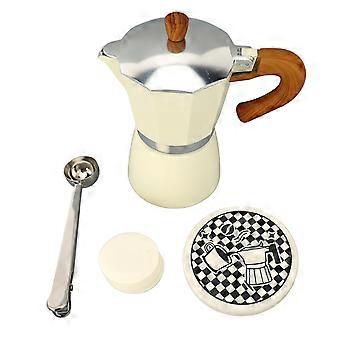 Aluminum Moka Coffee Pot 150ML Beige with Wood Grain Handle