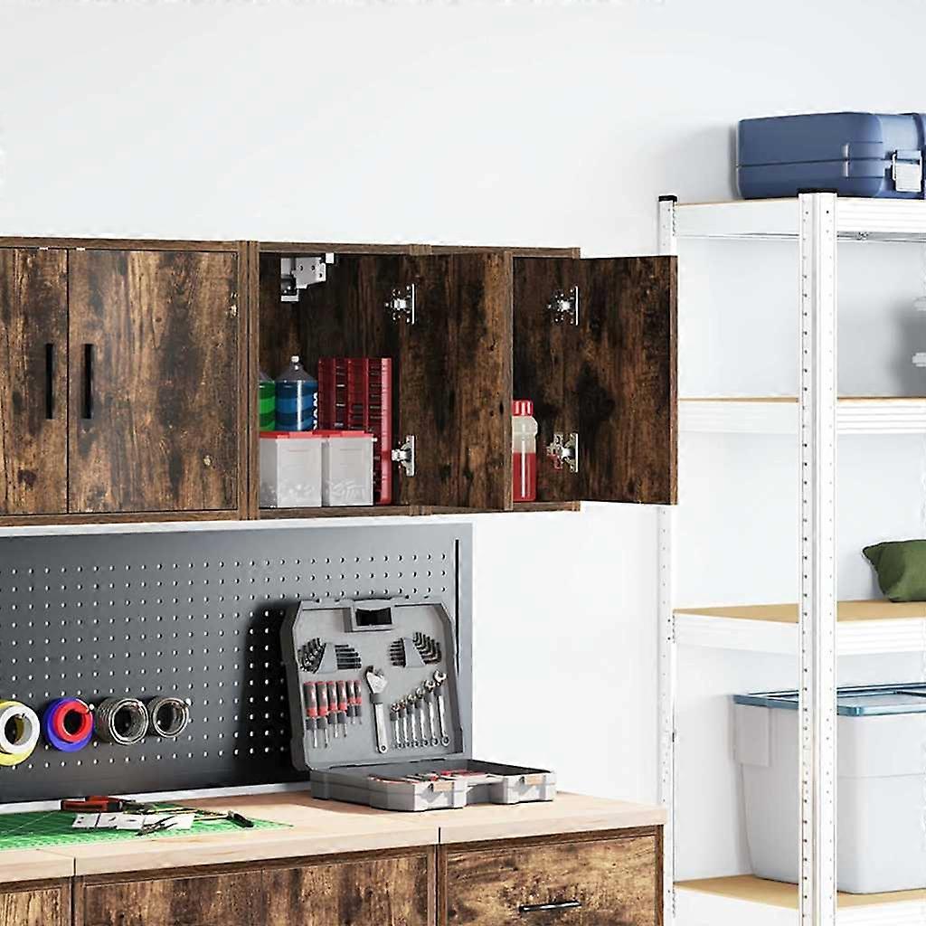 Garagen-Wandschränke 2 Stk. Räuchereiche Holzwerkstoff