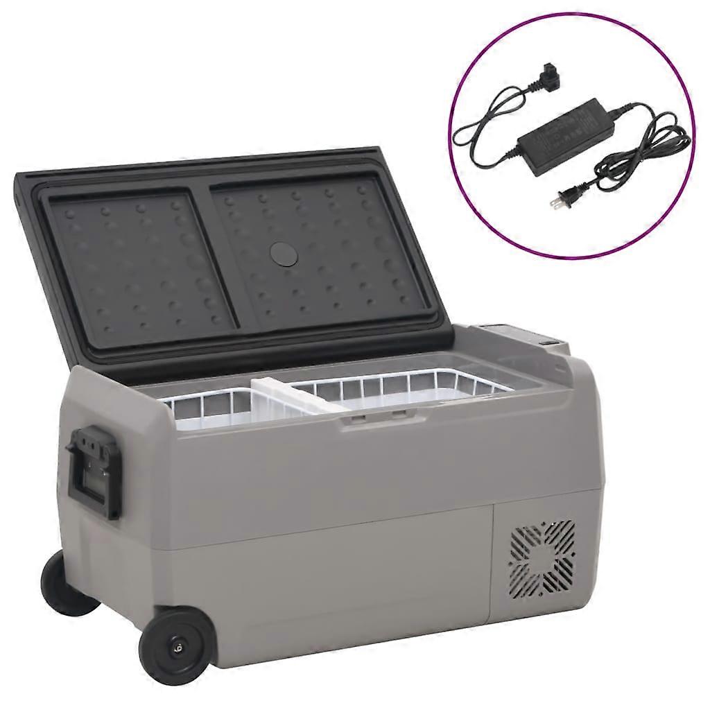 Mit dieser tragbaren Kühlbox kannst du bei allen Outdoor-Aktivitäten, kurzen oder langen Reisen immer frische Lebensmittel und kalte Getränke mitnehmen. Großes Fassungsvermögen: Die Kühlbox verfügt über einen Kühl- und einen Gefrierbereich, der reichlich Stauraum für deine Getränke, Obst, Gemüse, Eis und Fleisch bietet. Der herausnehmbare Korb ist außerdem praktisch, um den Innenraum anzupassen und deine verschiedenen Lebensmittel zu organisieren.Effiziente Kühlung: Die elektrische Kühlbox ist mit einem starken Kompressor ausgestattet, der den Inhalt der Thermobox schnell abkühlen kann. Die Wärmeisolierung sorgt für eine lang anhaltende Kühlung und bewahrt die Frische und den feinen Geschmack der Lebensmittel.2 Modi: Je nach deinen Bedürfnissen verfügt der Mini-Kühlschrank über 2 verschiedene Modi: Max und ECO. Das Thermostat stoppt den Betrieb, wenn die eingestellte Temperatur erreicht ist, und nimmt den Betrieb wieder auf, wenn die Temperatur im Auto-Kühlschrank um einige Grad gestiegen ist.Schutz der Autobatterie: Dank der Temperatur-Speicherfunktion und dem Batterie-Schutzsystem verhindert die Kühlbox, dass die Fahrzeugbatterie leer wird.Anti-Vibration-Funktion: Das Anti-Vibrations-Design und die zuverlässige Dichtung machen die Kompressor-Kühlbox zu einer fabelhaften Wahl für Autos. Sie funktioniert auch auf holprigen Straßen.Tragbar: Dank des Seitengriffes und der Rollen lässt sich die Autokühlbox überallhin mitnehmen. Die ideale Ausrüstung für Festivals, Wanderungen, Picknicks und Camping. Farbe: Schwarz und GrauMaterial: Polypropylen (PP), Polyethylen (PE)Gesamtabmessungen: 71 x 36 x 46 cm (B x T x H)Innenabmessungen (links): 23 x 27 x 37 cm (B x T x H)Innenabmessungen (rechts): 29 x 27 x 20/37 cm (B x T x H)Fassungsvermögen: 50 LStromversorgung: DC 12/24 V oder AC 100-240 VFunktion LED-Display Touch-BedienfeldMit eingebauter LED-Licht