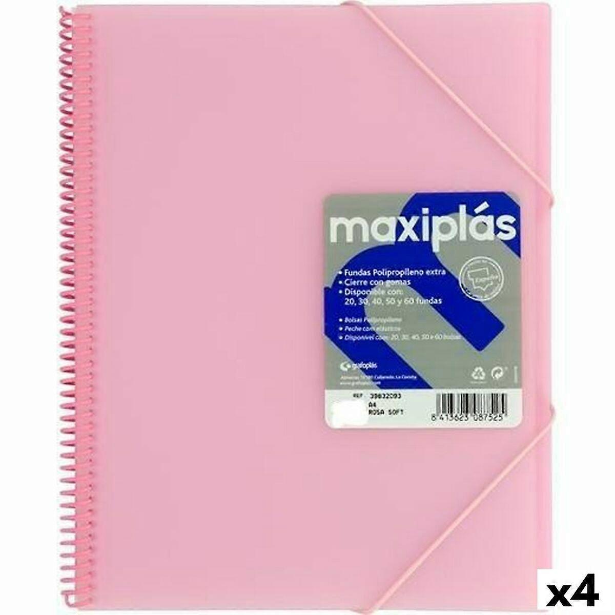 Gehen Sie zurück ins Büro, ohne Details zu vergessen: Kaufen Sie Ordnungsmappe Grafoplas Hellrosa A4 (4 Stück) und seien Sie der Neid Ihrer Kollegen Art: FaltblattFarbe: HellrosaFormat: A4Material: PolypropylenMerkmale: InnentascheEinband: SpiraleStückzahl: 4 StückVerschluss Armband: GummiEnthalten: 40 Hüllen