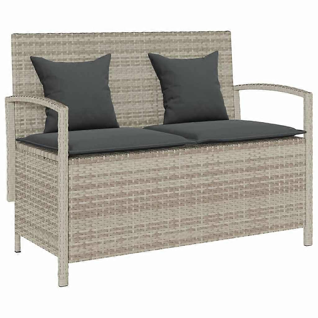 Gartenbank mit Stauraum und Kissen Hellgrau Poly Rattan