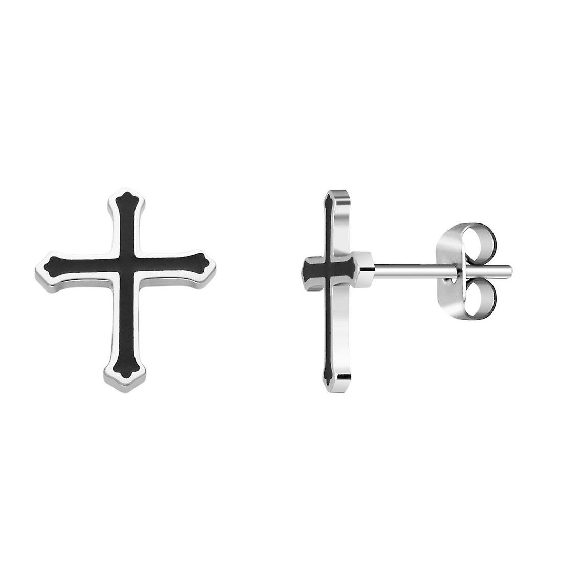 Boucles d'oreilles Homme ROCHET KINGDOM - croix acier et laque noire