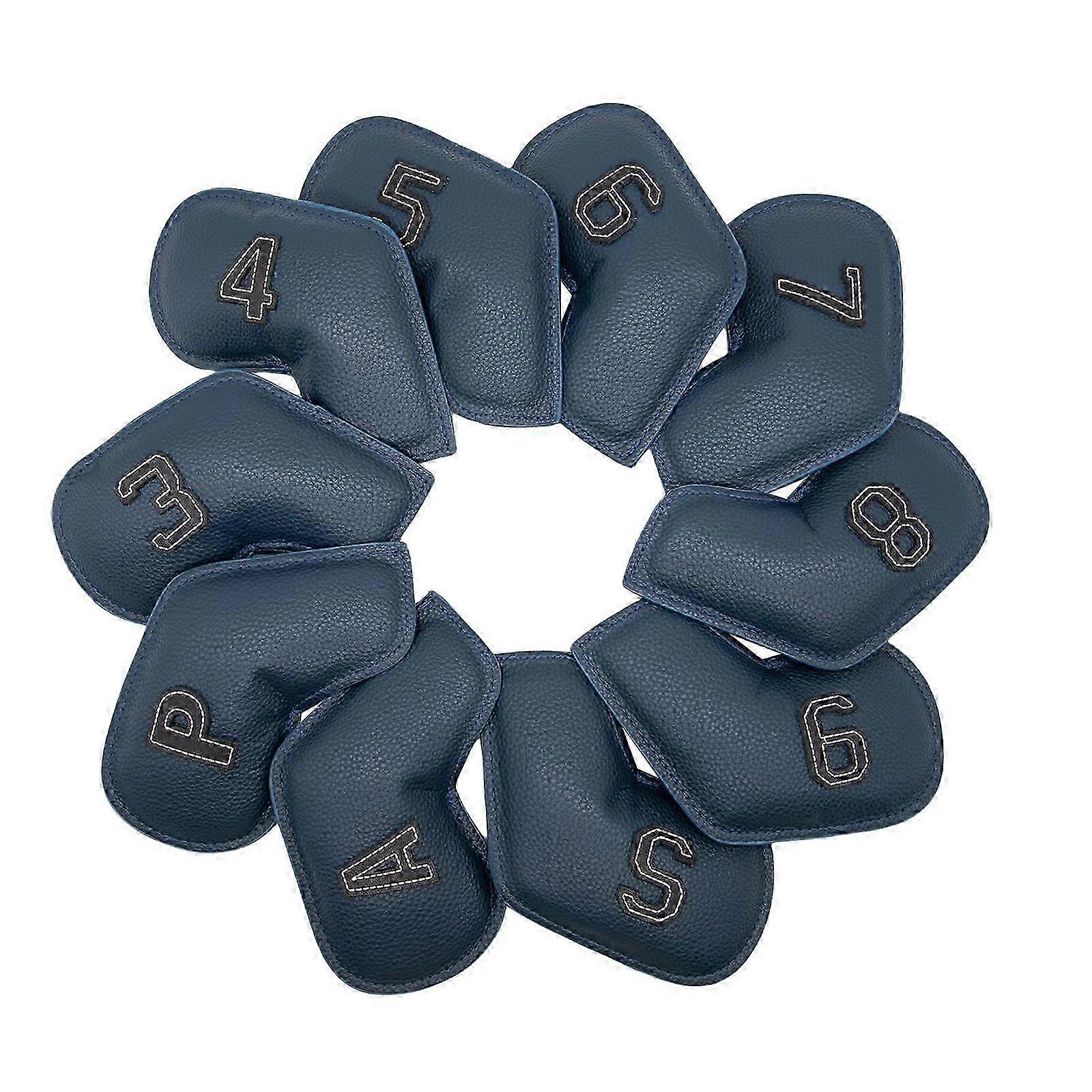 10Pcs Golf Iron Headcover ,,,,7,8,9,A,S,P Club Embroidery Number for All Brands-color: Dark Blue