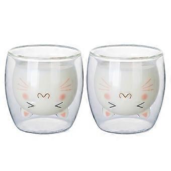 100% New,Cat Double Layer Glass Custom Gifts Durable High Quality Pretty Style Cute And Creative For Juice Coffee Cups