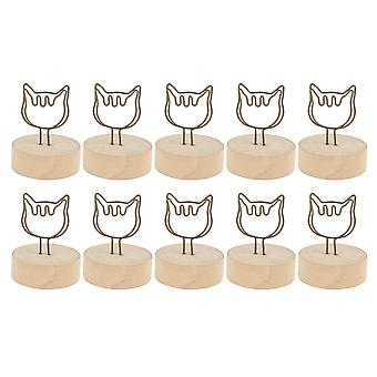 10PCS Cat Shape Table Number Holders with Log Base, Vertical Place Card Clips for Name Cards, Simple Cute Table Decoration Accessories
