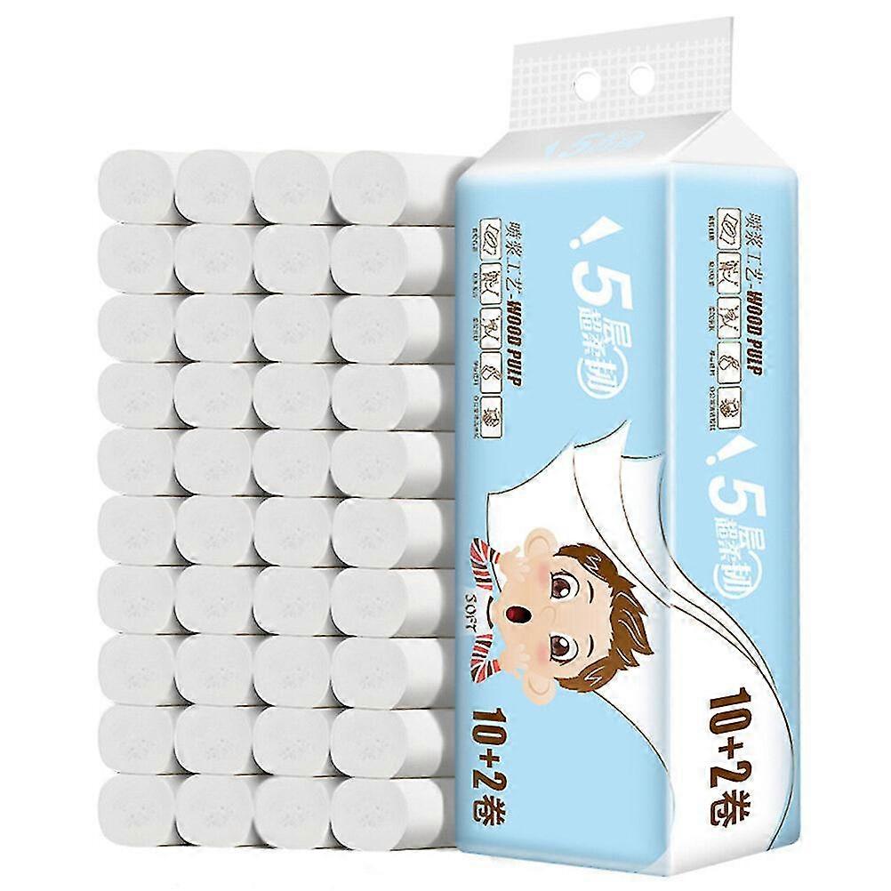 12 Rolls Coreless Toilet Paper 5-layer Roll Paper Bathroom Tissue For Home Office Hotel