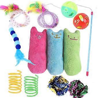 12 Pack Cat Toys, Kitten Plush Catnip Toys, Teeth Cleaning Interactive Cat Feather Teaser Spring Toy