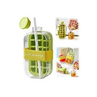 2-in-1 Ice Maker Ice Cube Tray & Water Bottle, Touch-Free Silicone Ice Cube Tray