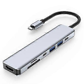 2121 7-in-1 USB-C Docking Station Lightweight Portable USB Hub Adapter Multi-Port Type-C Converter Support HD 4K 30Hz, PD 87W, 5.0