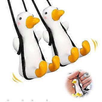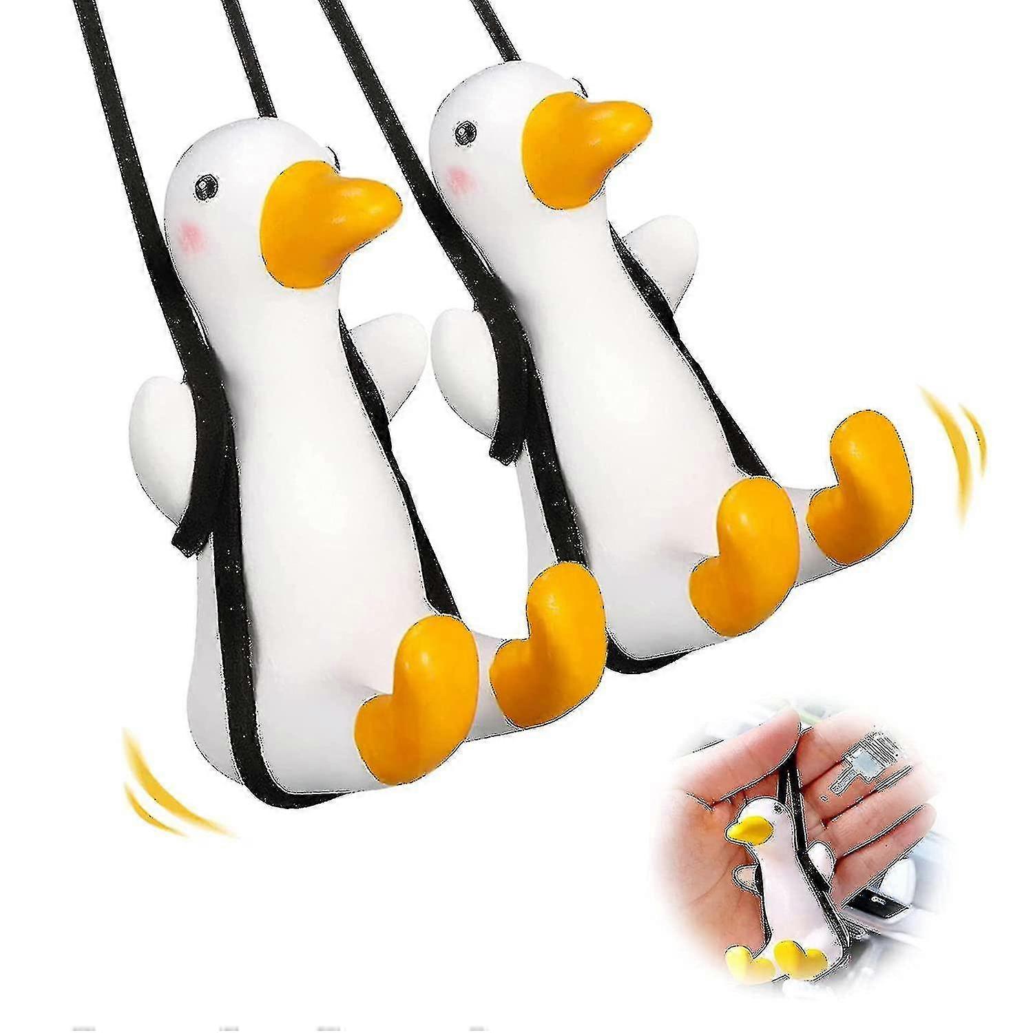 2pcs Swinging Duck Car Pendant, Cute Flying Duck Anime Car Mirror Hanging Ornament Interior Rearview Mirrors Decoration