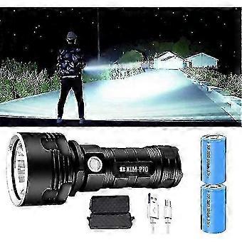 3000-10000 Lumens P70 LED Flashlight - Ultra Bright Rechargeable High Performance Strong Light with Fixed Focus & Long Range - Black