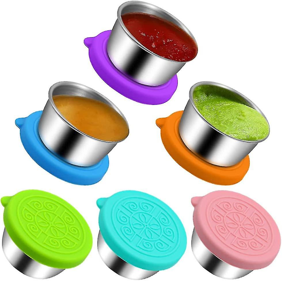 6pcs Salad Dressing Containers To Go,small Condiment Containers With Lids, Stainless Steel Condiment Cup Dipping Sauce Cups Container