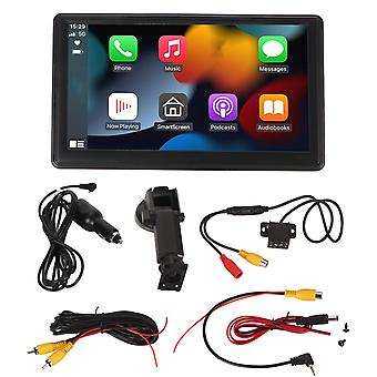 Feature: 1.EASY CONNECTION: Wireless for CarPlay and for Android Auto Easily connect your smartphone to make calls, send text messages, use maps to navigate and listen to music with ease, suitable for most cars. 2.MIRROR LINK: The car stereo's for AirPlay (for iOS) and for Android Cast (for Android) Feature:s let you wirelessly mirror your device's screen onto the 7 inch HD display, perfect for sharing media, navigation or other apps with others. 3.VOICE CONTROL: The 7inch HD car stereo has a built in microphone and supports voice control so you can take calls while driving, voice control software, and easy to use, simply mount the device on the dashboard or windshield, plug in the cigarette lighter, and you're prepare to go. 4.NIGHT VISION REAR VIEW CAMERA: The car radio is equipped with a HD night vision rear view camera, which will automatically display the rear view and front view when you are backing up. With 180 super wide viewing angle and waterproof design, it makes parking safer and easier. 5.BLUETOOTH CONNECTION: The voice frequency output option allows you to connect directly to your car's Bluetooth for a lossless car voice frequency experience.There are also 3 voice frequency output methods to choose from: 1. AUX connection, simply plug the included voice frequency cable into your car's AUX port, 2. FM Transmission, and 3.Native Speaker.Item Type: 7 Inch Wireless Bluetooth Car Stereo Material: ABSDisplay: 7in IPS High Definition Touchscreen DisplayDisplay Power Supply: 12V-24VBluetooth Version: 5.0 VersionWIFI: 2.4G/5G Dual BandRunning Memory: 1Gbit DRAMDisplay Resolution: 1024x600Output Power: Video Output 1.4VSpeaker: Built in Speaker (1W)Mirror Link: Supportfor IOS for Carplay: Supportfor Android Auto: SupportBackup Camera: SupportFM: 87.5 to 108.0MHz Language: English/Chinese/German/French/Spanish/Italian/Japanese Package List: 1*Monitor 1*Suction Cup Stand 1*Cigarette Lighter Power Supply 1*3.5mm Voice Frequency Cable 1*Camera 1*Camera AV Cable 1*Camera Power Cable 2*Camera Mounting Screws 1*Instruction Manual