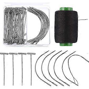 70 Pieces Wig Making Pins Needles Set, Wig T Pins And C Curved Needles With 328 Yard Thread For Wig Making, Blocking Knitting, Modelling And Crafts