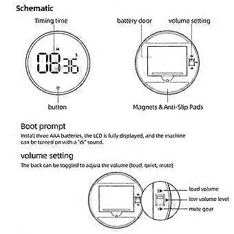 Countdown Clock Kitchen Timer Mute Magnetic Self Regulating Rotary LED Tool