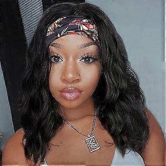 Short Wavy Bob Headband Wig Natural Black Synthetic 14 Inch Glueless Wear with Natural Hairline