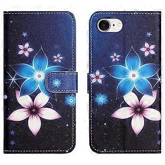 For iPhone 16e Case Pattern Print PU Leather Wallet Phone Cover Cross Texture-Flower and Butterfly