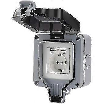 Garden Sockets Outdoor Socket Ip66 Weatherproof Usb Socket Socket Wall-mounted Eu Plug