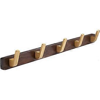 Generic Wall Mounted Coat Rack,Entryway Hanging Coat Rack,Metal Wood Coat Rail with 5 Rustic Hooks Rail for Coat,ScarfHat,Walnut Gold Matt