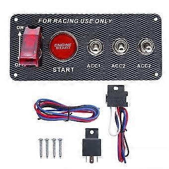 Ignition Switch Panel 12V Racing Car Engine Start Push Button Switch Panel Carbon Fiber LED Rocker Switch for Racing Car RV Truck 5 in 1