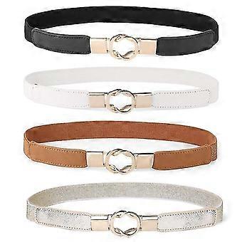 Ladies' Vintage Elastic Belts, 4 Pieces in Plus Size, Soft Leather with Pin Buckle, Versatile for All Seasons