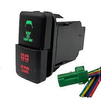 Led Light Bar Dual Push Button Switch Green&Red Led Push Switch with Wiring Connector for Toyota FJ Cruiser Prado Landcruiser