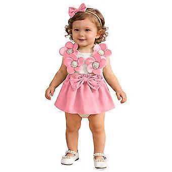 Toddler Baby Girl Clothes Infant Girls Bodysuits Sleeveless Floral Bowknot Romper Dress With Headband 2PCS Set Cute Cozy One-Pieces
