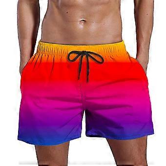 Men's Gradient Swim Trunks Elastic Waist Drawstring Quick Dry Swim Shorts Funny Beach Shorts