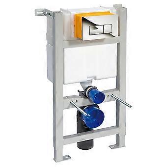 Mid Height Dual Flush Concealed Wall Hung Toilet Cistern with Frame & Square Push Plate - Chrome