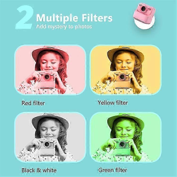��Instant Print Fun��The kids' camera features instant printing with two modes: grayscale and dot matrix printing, plus three color depth options. Using advanced thermal printing, it's ink-free, BPA-free, and safe for kids. Children can color their printed photos with their favorite markers ��Versatile Digital Camera��Packed with features like instant printing, colorful photo and HD 1080P video capture, music player, and puzzle games ��Dual-Lens & HD Selfies��Equipped with front and rear dual lenses, kids can easily take selfies and capture HD photos. The 2.4-inch IPS screen offers a vivid display for their creative shots, making photography fun and educational ��Perfect Gift for Kids��Ideal for ages 3 to 12, this adorable camera makes a great gift for Children's Day, Christmas, birthdays, and other occasions. Encouraging exploration and creativity, it's a wonderful companion for daily adventures and travel ��Safe and Portable Design��Compact, lightweight, and safe for little hands, this camera ensures easy portability while keeping kids engaged and entertained wherever they go Specifications: Photo paper size: 5700mm*56mm (single roll printing paper, for reference only) Print size: 85mm*47mm (single photo printing size, for reference only) Image size: 1M/3M/5M/8M/20M/48M Video resolution: 720P/1080P Print mode: gray scale/dot matrix Print density: high/medium/low Screen brightness: 1/2/3/4/5/6/7/8 Image sensor: 1/4 inch, CMOS with primary color filter Exposure compensation: automatic Focal length: 60CM/90CM Focus range: 40CM/60CM Zoom: manual/16 times Fill light: manual White balance: automatic Timer photo: 3 seconds/5 seconds/10 seconds Image effect: filter and module Recording: built-in MIC Supported image format: JPG Print output time: about 7 seconds Automatic screen off: off/1/2/3 minutes Automatic shutdown: off/3/5 minutes System volume: 0/1/2/3/4/5/6/7 Supported languages: English, French, German, Spanish, Italian, Chinese, Czech, Portuguese, Polish, Dutch, Korean, Russian, Turkish, Japanese Display screen size: 2.4 inches, IPS HD Display screen resolution: 240*320 External interface: Type-C Battery capacity: 1200mAh Printing life: about 4 rolls of paper (full power) Video recording life: about 3.5 hours (full power) Charging time: about 3 hours Photo storage: support FAT32 format TF memory card (included 32G memory card) Product size: 90*55*90mm Product weight: 457.6g
