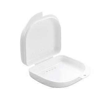 Retainer Case With Vent Holes and Hinged Lid Snaps Mouth Guard Case Orthodontic Dental Retainer Box Denture Storage Container (White)