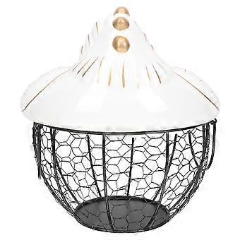 Sturdy Iron Egg Storage Basket with Ceramic Lid, Vegetable and Fruit Organizer, Hen Shaped Decorative Container for Kitchen Desktop Home Use