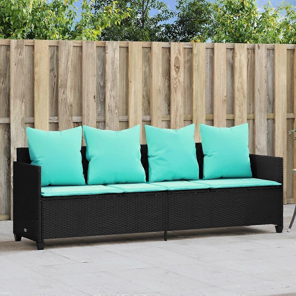 Sonnenliege mit Kissen Schwarz Poly Rattan