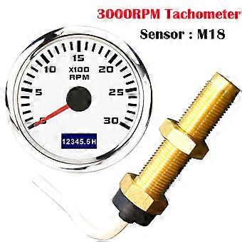 Universal 52MM Tachometer with M16 M18 Tacho Sensor 3000 4000 6000 7000 8000 RPM Marine Tacho Meter with Hourmeter Red Backlight