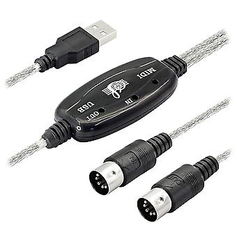 USB MIDI Cable Adapter, USB Type A Male to MIDI Din 5 Pin In-Out Cable Interface with LED Indicator for Music Keyboard