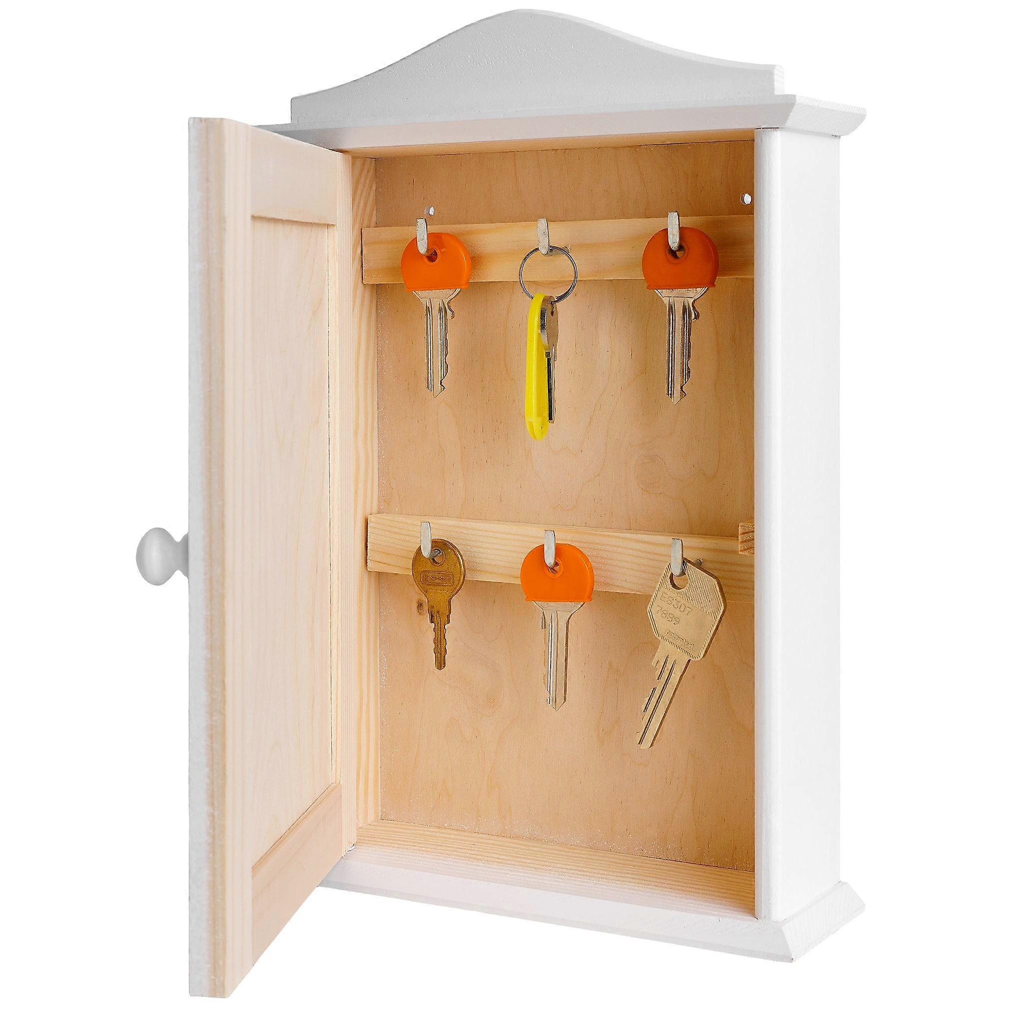 Schlüsselkasten Holz mit 6 Haken| Weiß 20 x 6 x 29,5 cm | Schlüsselschrank Schlüsselbrett | Schlüsselhaken Box für Aufbewahrung, Dekoration